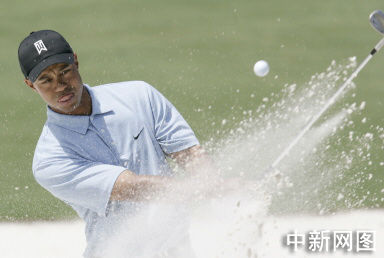 4月4日,在2005年高爾夫名人賽預(yù)選賽上,美國選手泰格-伍茲揮桿擊球。此次名人賽在喬治亞的奧古斯塔國家高爾夫球俱樂部舉行,第一輪比賽將于4月7日開始。