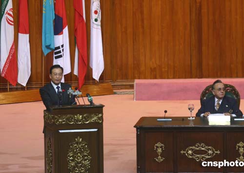 溫家寶今天出席亞洲合作對(duì)話第四次外長(zhǎng)會(huì)議開幕式并講話。他表示,經(jīng)過(guò)多年探索,中國(guó)找到了一條符合國(guó)情的發(fā)展道路,這就是中國(guó)特色社會(huì)主義現(xiàn)代化建設(shè)道路,也就是和平發(fā)展的道路。二十多年來(lái),這條道路,不僅使中國(guó)自己發(fā)展了起來(lái),而且給亞洲國(guó)家?guī)?lái)了機(jī)遇,也促進(jìn)了世界的和平與發(fā)展。