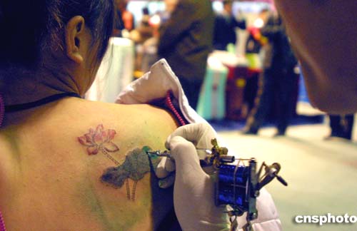 四月十一日,第七屆新疆美容美發(fā)化妝品博覽會(huì)在烏魯木齊開幕。韓國(guó)、日本及中國(guó)內(nèi)地的一百多家客商展出各類品牌產(chǎn)品千余種,涉及美容器械、美容美發(fā)用品、化妝品等。圖為參展企業(yè)推出的“美容紋身”受到烏魯木齊時(shí)尚女性的青昧,紛紛“以身相試”。作者:劉新