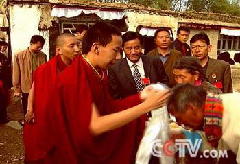 這是2004年9月班禪來(lái)到日喀則郊區(qū)走訪農(nóng)戶(hù)時(shí)的情景?吹讲貐^(qū)人民的生活水平不斷提高,目睹著西藏一年年在發(fā)展在變化,身為藏傳佛教領(lǐng)袖的第十一世班禪心里格外高興。