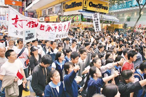 由香港多個民間團體發(fā)起的“反日入常大游行”,大會表示有12000人參加,而警方則指有5000人。游行隊伍昨午先在維園集合,參加者無分男女老少,亦不乏外籍人士和來自內(nèi)地的人士,當(dāng)中不少人穿上印有反日字句的T恤,也有自備抗議橫額,更有高舉國旗的。而主辦單位亦派員向游行人士派發(fā)有關(guān)保護釣魚島事件的光碟、小冊子,以及印上“我們憤怒了,日本必須道歉賠償”的T恤。