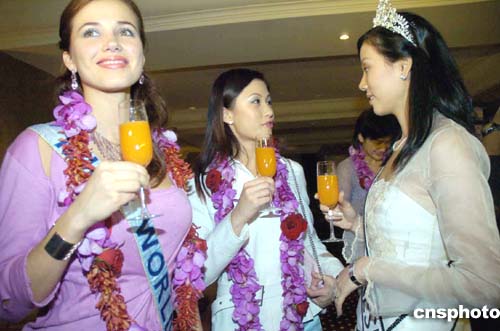 由鳳凰衛(wèi)視組織的“鳳凰有約——情系印度尼西亞送愛心”赴印度尼西亞親善訪問團(tuán),4月17至20日在印度尼西亞展開災(zāi)區(qū)親善探訪活動(dòng)。圖為2004年世界小姐Miss Maria Garcia Mantilla (左)、2004年中華小姐李詩琪(中)與印度尼西亞小姐一起為災(zāi)區(qū)送愛心。作者:洪少葵