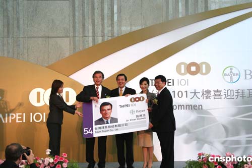 為慶賀這一具有里程碑象征意義的喜事,臺北101大樓董事長陳敏熏煞費苦心結(jié)合首家“房客”拜耳公司的習(xí)俗和臺灣習(xí)俗,舉辦了一場熱鬧異常的入厝儀式。臺北市長馬英九也欣然前來見證入厝儀式。