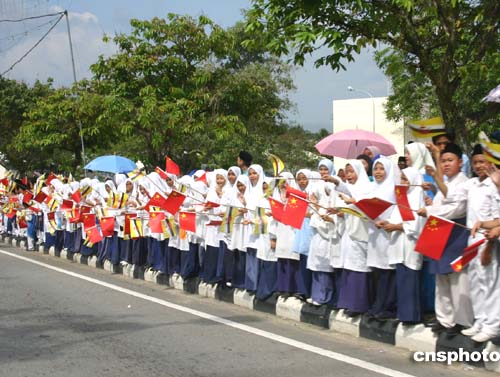4月20日,文萊中學(xué)生王宮外列隊(duì)歡迎中國(guó)國(guó)家主席胡錦濤到訪。作者:李靜