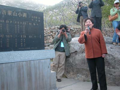 在《沂蒙山小調(diào)》誕生紀(jì)念地白石屋村,“魅力山東游——中國(guó)網(wǎng)絡(luò)媒體山東行”采訪團(tuán)記者了解了《沂蒙山小調(diào)》誕生過(guò)程后,深受感動(dòng),在中共費(fèi)縣縣委常委、宣傳部長(zhǎng)李云凌領(lǐng)唱下,一同唱起《沂蒙山小調(diào)》,接受了一次傳統(tǒng)的革命教育。