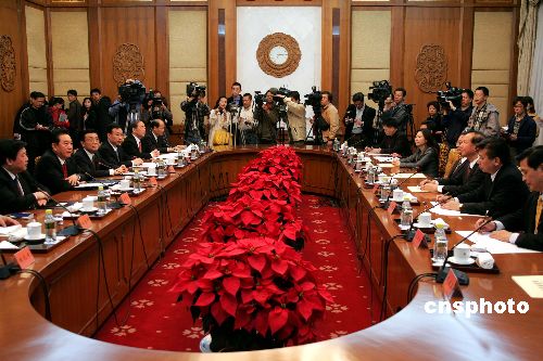親民黨秘書長秦金生一行二十四日下午抵達北京,與中共中央臺灣工作辦公室主任陳云林等舉行工作會談,并就親民黨主席宋楚瑜近期訪問大陸的接待安排事宜進行溝通磋商,作出安排。作者:毛建軍