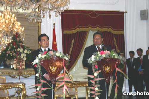 圖:胡錦濤與印尼總統(tǒng)蘇希洛舉行會談
