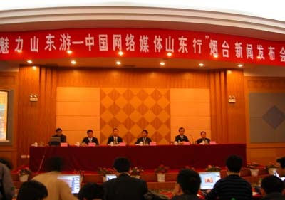 25日,“魅力山東游——中國網(wǎng)絡(luò)媒體山東行”采訪團(tuán)一行深入煙臺(tái)蓬萊景區(qū)、南山景區(qū)采訪。當(dāng)天下午,在新聞發(fā)布會(huì)上,煙臺(tái)市旅游局局長郝鳳利向網(wǎng)絡(luò)媒體記者介紹了煙臺(tái)旅游概況。