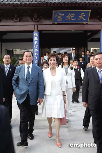以中國國民黨主席連戰(zhàn)為首的中國國民黨大陸訪問團四月二十七日下午在南京參觀天妃宮。作者:毛建軍