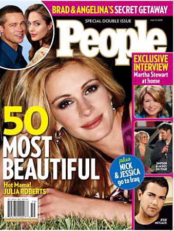 去年11月生下龍鳳胎的茱麗亞·羅伯茨則上了雜志“最有魅力50人”這期的封面,這份特刊將于周五發(fā)行。羅伯茨因此也創(chuàng)下一項紀(jì)錄:三次登上“最有魅力人物”的封面,9次被提名。