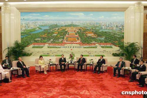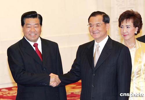 中新網(wǎng)4月28日電 中共中央政治局常委、全國政協(xié)主席賈慶林今日(28日)17時30分左右,在人民大會堂會見了連戰(zhàn)率領(lǐng)的中國國民黨大陸訪問團一行。