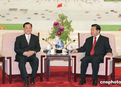 賈慶林說,不久前,我與江丙坤副主席見面時(shí),曾引用魯迅先生的詩句“渡盡劫波兄弟在,相逢一笑泯恩仇”來比喻連戰(zhàn)主席的來訪。我期待著這樣的境界:能夠以胡錦濤總書記與連戰(zhàn)主席明天的握手為標(biāo)志,成為國共兩黨關(guān)系的真實(shí)寫照。