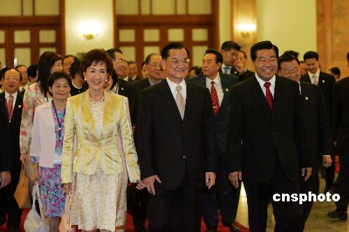 中新社北京四月二十八日電(記者曾嘉)中共中央政治局常委、全國政協(xié)主席賈慶林今天在北京人民大會堂,會見了以中國國民黨主席連戰(zhàn)率領(lǐng)的中國國民黨大陸訪問團一行。