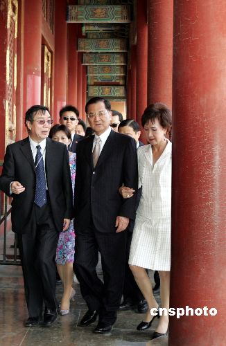 連戰(zhàn)訪團(tuán)隨即穿太和門,踏漢白玉塔基拾級登臨故宮內(nèi)最雄麗的太和殿,有記者詢問:“連戰(zhàn)主席,能不能談?wù)勀鷮蕦m的看法?”連戰(zhàn)連嘆“很好、很好”,其夫人連方瑀也不住的頷首示意。
