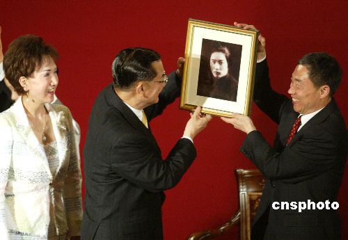 四月二十九日,中國國民黨主席連戰(zhàn)在北京大學(xué)發(fā)表演講,并獲贈具有特殊意義的北京大學(xué)紀(jì)念品。作者:廖文靜