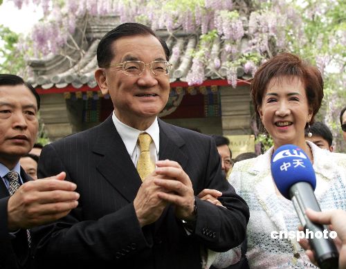 二零零五年四月二十九日,中國(guó)國(guó)民黨主席連戰(zhàn)在北京大學(xué)演講后,攜夫人參觀母親趙蘭坤當(dāng)年在燕京大學(xué)就讀時(shí)曾住過的靜園六院中的一院。圖為連戰(zhàn)在院外接受記者采訪時(shí)高度稱贊北大學(xué)子。作者:武仲林