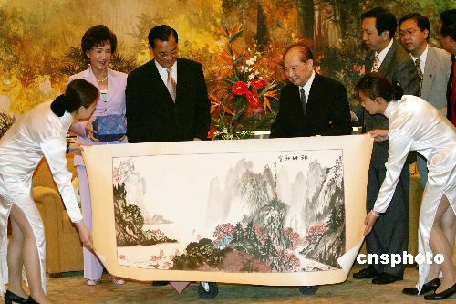 會(huì)見中,汪會(huì)長(zhǎng)向連戰(zhàn)主席贈(zèng)送了北京一位九十多歲的名畫家秦云嶺所畫的《江山如畫》及一九八三年與一九九六年在大陸出版的連老先生兩本著作;連主席轉(zhuǎn)交了辜振甫夫人的一封信給汪會(huì)長(zhǎng),并向他贈(zèng)送了辜先生年青時(shí)代居住陽(yáng)明山俯瞰紗帽山所創(chuàng)作的一幅油畫的復(fù)制品、臺(tái)灣琉璃名家王俠軍作品《宏圖》以及祖父連橫先生名作《臺(tái)灣通史》與他個(gè)人著作《改變,才有希望》。