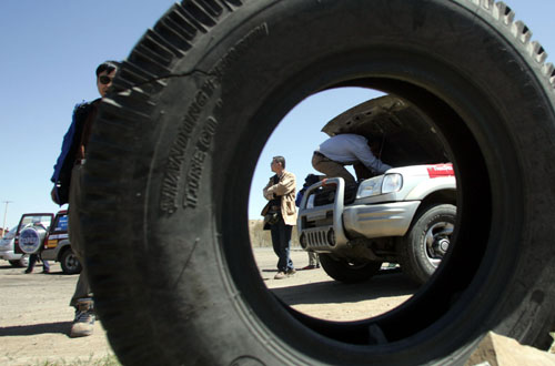 中新網(wǎng)5月2日電 二零零五年五月一日十三時左右,穿越可可西里聯(lián)想鋒行探險隊四號車在內(nèi)蒙古自治區(qū)集寧市通往呼和浩特的110國道上發(fā)生故障。