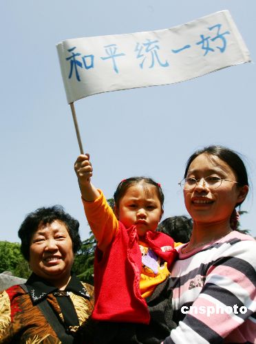 圖:“和平統(tǒng)一好”迎宋楚瑜
