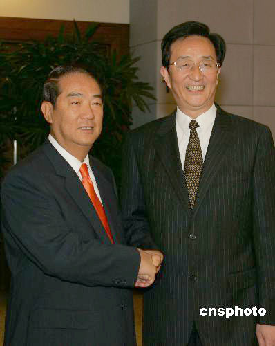五月七日晚,中共中央政治局委員、上海市委書記陳良宇在上海科技館會(huì)見了親民黨主席宋楚瑜率領(lǐng)的親民黨大陸訪問(wèn)團(tuán)一行。作者:潘索菲