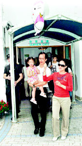 前天午飯后伏明霞與梁錦松一個抱著愛女,一個則為她拿氣球出現(xiàn)在拍攝現(xiàn)場,全程有四個貼身保鏢跟隨。開機前梁錦松將愛女交給菲傭,然后便跟伏明霞十指緊扣地投入拍攝。拍罷便匆匆?guī)е畠撼怂麄兊乃郊臆囯x開。據悉,此特輯稍后將在全國的黃金時間播放。