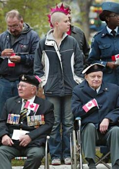 中新網(wǎng)5月9日電 據(jù)美聯(lián)社報(bào)道:加拿大舉行慶;顒右约o(jì)念盟軍擊敗納粹德國60周年。圖為三名加拿大老兵5月8日在溫尼伯湖參加勝利紀(jì)念活動。(固山)