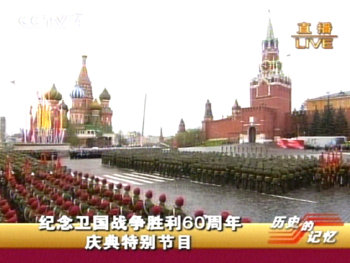 5月9日,俄羅斯在莫斯科紅場舉行紀念衛(wèi)國戰(zhàn)爭勝利60周年慶典。(央視截圖)