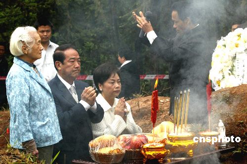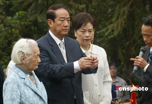 九日上午,親民黨主席宋楚瑜攜八十七歲高齡的母親、夫人及家人來(lái)到祖籍地湘潭縣射埠鎮(zhèn)巨魚(yú)村,完成他湖南之行的最大心愿——祭掃曾祖父、祖父和祖母的墓,盡一個(gè)離鄉(xiāng)半個(gè)多世紀(jì)游子的孝道。
