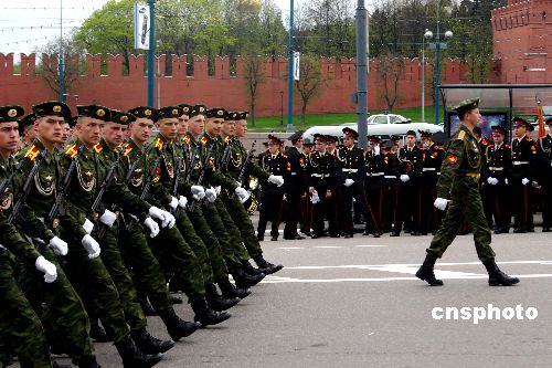 當?shù)貢r間五月九日,閱兵方隊前往紅場參加俄羅斯紀念衛(wèi)國戰(zhàn)爭勝利六十周年慶典的閱兵式。作者:孫宇挺