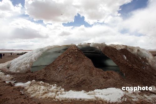 二零零五年五月,穿越可可西里聯(lián)想鋒行探險(xiǎn)隊(duì)的隊(duì)員們?cè)谖鞑仉p湖美麗的冰山奇觀前考察。海拔四千多米的雙湖以豐富的冰山聞名,冰山總數(shù)位列世界第三。作者:武仲林