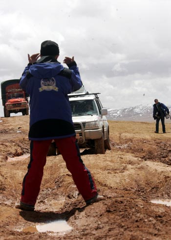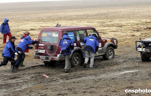 五月七日探險(xiǎn)隊(duì)曲尼駛往班戈遭遇陷車(圖)