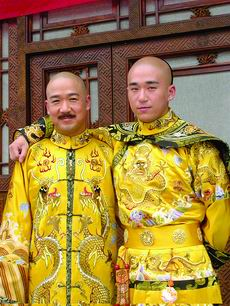 現(xiàn)場張國立、張默父子一起“黃袍加身”,各穿一身龍袍并肩亮相,父子倆還摟在一起合影,氣氛非常和諧!讹w龍倚天游》中飾演乾隆皇帝的張國立與飾演十四阿哥的張默再度出演父子!洱埛驱堷P非鳳》中張默則扮演光緒皇帝,張國立出演反派一號世鐸王爺。兩部劇同時開拍,也讓父子倆有機會“同登皇位”。不過父子倆從未在一起接受采訪,張國立當(dāng)著兒子的面向來是嚴父模樣,但背地里卻喜歡講兒子的好話。(趙楠楠)