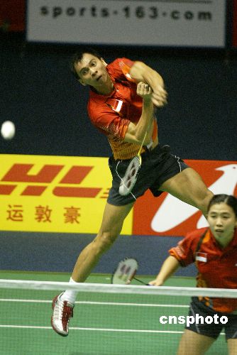 五月十二日,在北京首都體育館進(jìn)行的第九屆蘇迪曼杯世界羽毛球混合團(tuán)體錦標(biāo)賽大戰(zhàn)進(jìn)入了第三天,中國隊(duì)與印度尼西亞隊(duì)交鋒,在首場的混合雙打的比賽中,印度尼西亞組合林培雷、尤·泰蒂一比二不敵中國組合張軍、高崚。