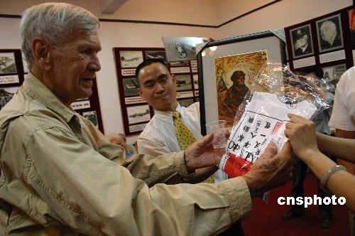 在位于重慶枇杷山的飛虎隊(duì)博物館里,他看見印有中文文字、當(dāng)年被飛虎隊(duì)隊(duì)員稱作“救命服”的T恤時(shí),動(dòng)容地說,戰(zhàn)爭結(jié)束后,他一直把自己穿過的那件“救命服”小心保存著。
