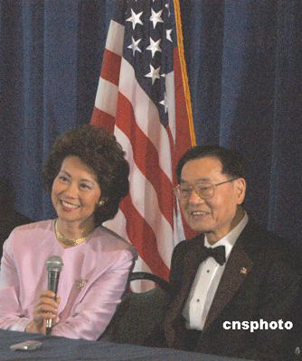 當?shù)貢r間五月十四日,二00五年度美國愛利斯島移民榮譽獎頒獎典禮隆重舉行。美國勞工部部長趙小蘭和父親趙錫成—美國福貿(mào)(航運)集團董事長、著名偵探李昌鈺、美國華人進口貿(mào)易協(xié)會主席蘇夢娜、大紐約小商家聯(lián)盟主席謝美琳等五位華人榜上有名。圖為趙家父女一同接受記者采訪。作者:譚宏偉
