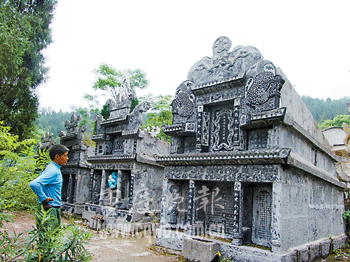 田緒明說,在彭水替人修建活墓已經(jīng)形成一項(xiàng)產(chǎn)業(yè)。彭水縣漢葭鎮(zhèn)至少有三撥兒石工,專門替人做生基。但是這些石工都只能包到二道工,因?yàn)橛幸恍⿲iT的包工頭,每天夾個皮包,四處亂竄動員那些發(fā)財(cái)?shù)纳馊、官員等修建活墓,承包到工程后立即轉(zhuǎn)手。頭道包工頭能從每個活墓轉(zhuǎn)包中凈獲利潤為工錢總額15-20%。但是如今管理已經(jīng)越來越嚴(yán)格,愿意修建活墓的官員大都是已經(jīng)退休的干部,現(xiàn)職干部幾乎沒有。(來源:重慶晚報(bào);記者丁香樂文/圖)