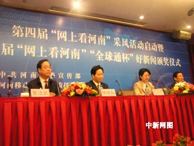 河南省委常委、常務(wù)副省長王明義,河南省委常委、宣傳部長孔玉芳,國務(wù)院新聞辦互聯(lián)網(wǎng)新聞研究中心副主任楊理科,中國網(wǎng)執(zhí)行總裁、中國互聯(lián)網(wǎng)新聞信息服務(wù)工作委員會秘書長李家明,河南省委宣傳部副部長常法武,河南移動通信有限責(zé)任公司總經(jīng)理原建國以及來自全國各地38家新聞網(wǎng)站的采風(fēng)團成員出席了今天的啟動儀式。