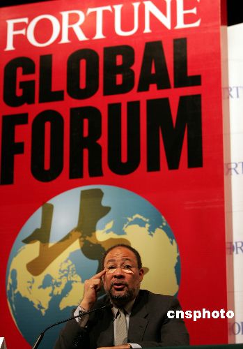 2005北京《財(cái)富》全球論壇5月17日在北京釣魚臺(tái)國賓館舉行,時(shí)代華納公司董事長兼首席執(zhí)行官理查德.帕森思(Richard D.Parsons)在會(huì)間的新聞發(fā)布會(huì)上解釋為什么《財(cái)富》全球論壇多次在中國召開的原因,并展望中國經(jīng)濟(jì)的發(fā)展前景。作者:任晨鳴