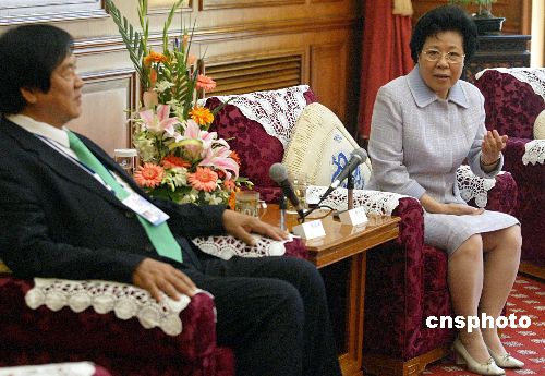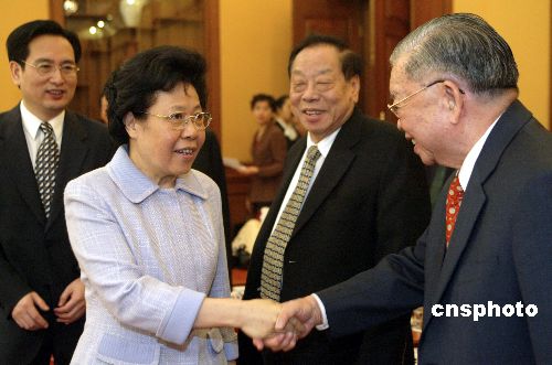 五月十九日,國務(wù)院僑務(wù)辦公室主任陳玉杰在北京會見了參加二○○五北京《財(cái)富》全球論壇的華商代表。作者:廖文靜