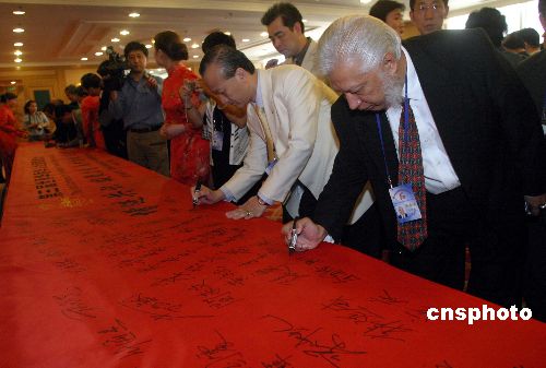 中新社北京五月十九日電(記者趙海燕)第三屆世界華僑華人社團(tuán)聯(lián)誼大會(huì)十九日下午在北京開幕,來(lái)自世界八十多個(gè)國(guó)家和地區(qū)的近四百名代表與會(huì),“反獨(dú)促統(tǒng)”是本次會(huì)議鮮明的主題。