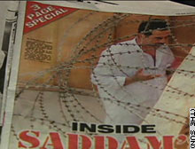 中新網(wǎng)5月22日電 《太陽報》最新刊出的薩達姆“監(jiān)獄生活照”是一幅大彩照,薩達姆身著白色長袍站在蛇形鐵絲網(wǎng)后面,手掌張開頭微低,像是在做禱告,也有人將其解讀為正在散步,并且同什么人在交談。(春風)