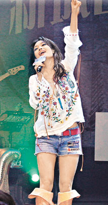 中新網(wǎng)5月23日電 據(jù)香港媒體報(bào)道,容祖兒和張信哲前晚在會展合作舉行《新城容我信愛一唱傾情音樂會》,祖兒身穿熱褲透視衫露黑bra大秀性感。開場時(shí)兩人合唱多首歌曲,令觀眾拍爛手掌,祖兒一時(shí)忘形說:“多謝張信哲給我的音樂會做特別嘉賓,我好少同帥哥合作。”事后祖兒坦言因太緊張才說錯(cuò),她說:“其實(shí)我是想講拍檔!倍⒄艽蠓秸f:“無所謂,很久沒跟美女合作了!