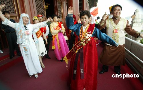 圖:少數(shù)民族模范代表天安門城樓上翩翩起舞