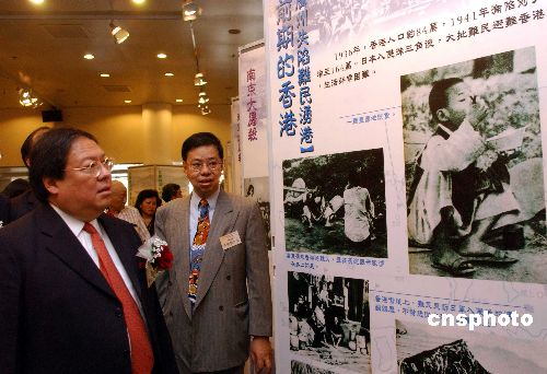 為紀(jì)念抗日戰(zhàn)爭(zhēng)勝利60周年,香港各界紀(jì)念抗戰(zhàn)勝利60周年活動(dòng)籌委會(huì)3日在中央圖書館舉辦《抗戰(zhàn)時(shí)期的香港》圖片展覽。立法會(huì)主席范徐麗泰在開幕儀式上致辭。作者:譚達(dá)明