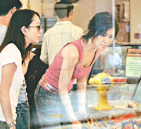 之后一行人到了附近的餐廳喝下午茶,身穿背心的Maggie彎腰在凍柜揀蛋糕時(shí),露出豐胸后的美好身段,一坐下已急不及待展示剛剛選購的泳衣,并在自己身上比量,又不斷問友人漂不漂亮,臉上充滿自信。只見她胃口不錯(cuò),短短時(shí)間已吃下不少東西。