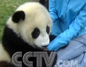 中國保護(hù)大熊貓研究中心獸醫(yī):我看從它的體重還有體長頭長尾長胸圍腹圍的發(fā)育情況來看,都是比較好的。