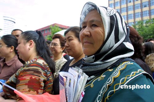六月七日是全國普通高校招生考試第一天,在烏魯木齊一民族考點(diǎn)外,一位維吾爾族大娘手持高考招生資料,等待自己的孩子順利完成第一門考試。據(jù)悉,二零零五年新疆報(bào)考普通高?忌_(dá)十二點(diǎn)八萬人,其中少數(shù)民族考生近五萬人,再創(chuàng)歷史新高。作者:劉新