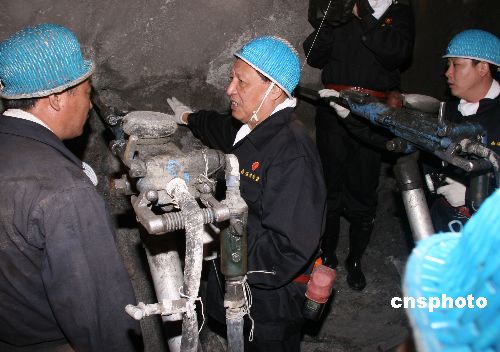 | 6月7日上午9時,全國人大常委會副委員長成思危率全國人大常委會《安全生產(chǎn)法》檢查組來到了黑龍江省鶴崗市鶴礦集團南山煤礦,檢查煤礦安全生產(chǎn)情況。檢查組乘井罐來到了千尺井下的掘進工作面。和井下中心變電所檢查,升井后又到南山煤礦生產(chǎn)調(diào)度室、井上瓦斯抽放區(qū)進行檢查。作者:房寶樹