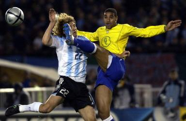 雙方此前曾經(jīng)進行了八十多場交鋒,因此互相知根知底,比賽中也毫不保守,一上來就展開激烈的對攻。開場3分鐘,薩維奧拉接到隊友傳球后低射偏出門柱,吹響了阿根廷隊的進攻號角。1分鐘后,阿根廷隊發(fā)起了一次漂亮的前場配合,魯伊-岡薩雷斯妙傳克雷斯波,后者停球后擺脫了AC米蘭俱樂部隊友卡福后,直接面對另外一名俱樂部隊友、巴西隊門將迪達將球打進,阿根廷以1比0領(lǐng)先。