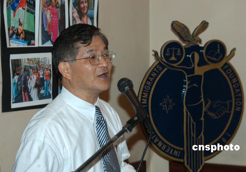 國(guó)際移民基金會(huì)主席Edward Juarez八日在記者會(huì)上介紹有關(guān)情況